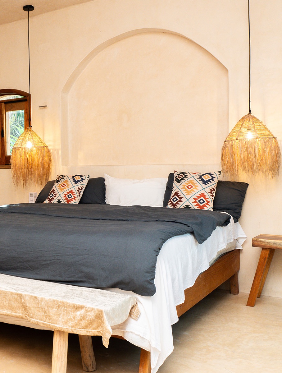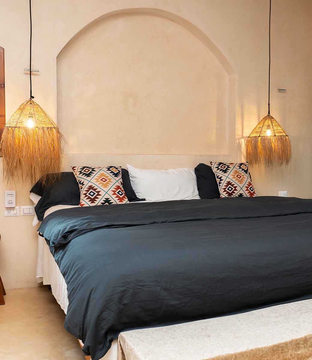 Relájate en las terrazas con sombra de madera natural, duerme entre textiles artesanales y despierta con el sonido de la brisa entre las palmeras. Aquí, el lujo se siente simple y real.